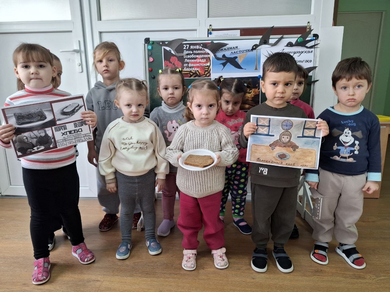 27 января 2026 года исполняется 82 года со дня полного снятия блокады Ленинграда — одной из ключевых дат в истории Великой Отечественной войны.В этот день воспитатели провели тематические мероприятие и акции на тему: «Блокада Ленинграда».В ходе беседы дети узнали о блокаде Ленинграда, об условиях жизни ленинградцев в годы блокады, о том, как они выживали, как приспосабливались к условиям постоянного голода и холода. Ребята также узнали о Дороге жизни, и как по ней перевозили грузы и людей. Конечно же, была затронута тема ленинградского блокадного хлеба: воспитанники узнали, что в его состав в самые трудные месяцы входили даже несъедобные составляющие, такие как столярный клей, опилки, гидроцеллюлоза, сосновый луб. Дети наглядно увидели кусочек хлеба, который на протяжении многих блокадных дней оставался для человека единственным источником жизни и надежды.